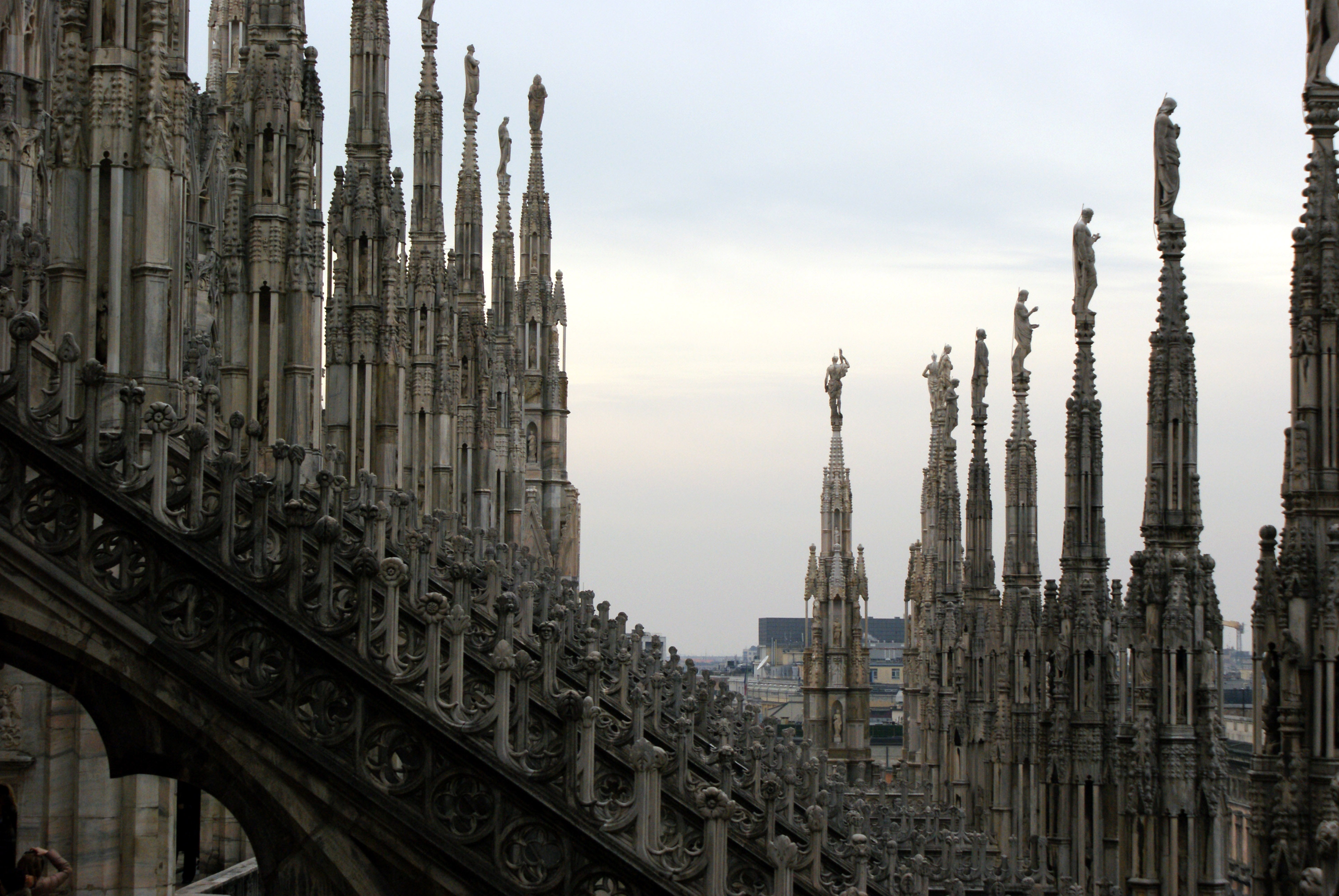 Mediolan sam w sobie raczej nie zachwyca, acz jest to ładne miasto. Szczególnie warte polecenia jest wejście i spacer po dachu katedry. Świetny widok! Co nieco poniżej: