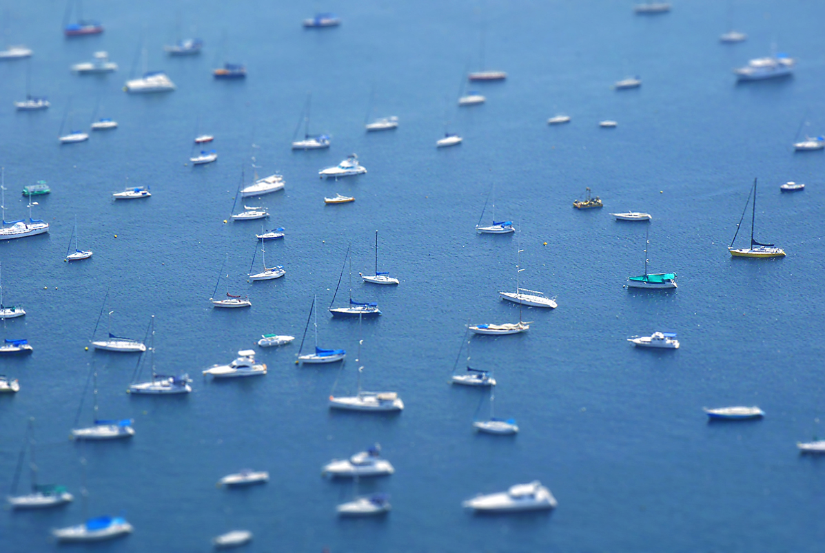 Żeglarze nie mogą cumować przy kejach, stąd miły dla oka na górze tłok na kotwicowisku.