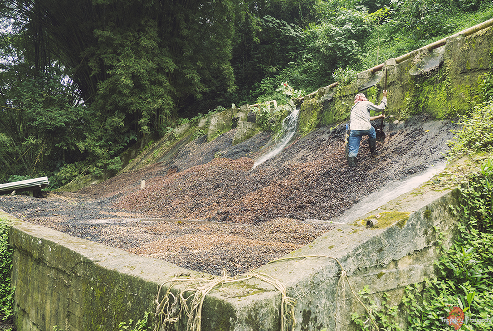 Sama opowieść o tym jak powstaje kawa nie różni się zbytnio od tej w fince El Ocaso, co jest oczywiste biorąc pod uwagę, że proces jej produkcji wygląda praktycznie tak samo. To, co urzekło mnie w La Victorii to dwie rzeczy, a właściwie dwie z plusem. Po pierwsze, choć obie farmy szczycą się byciem „fair trade” czyli godziwym wynagradzaniem pracowników, to w El Ocaso pytania o stawki zostały zbyte nerwowym zasłanianiem się tajemnicą biznesową. Jedyne co się dowiedzieliśmy to fakt, że robotnicy w trakcie pracy (co jest dobrym dodatkiem) mają zapewnione noclegi oraz wyżywienie. Natomiast przewodniczka w La Victorii bez chwili zastanowienia wyjawiła, że stawka wynosi 20 000 pesos za 45 kg, czyli mniej więcej godzinę pracy. Jest to ok. 30 złotych, czyli wynagrodzenie całkiem niezłe jak na kolumbijskie realia.