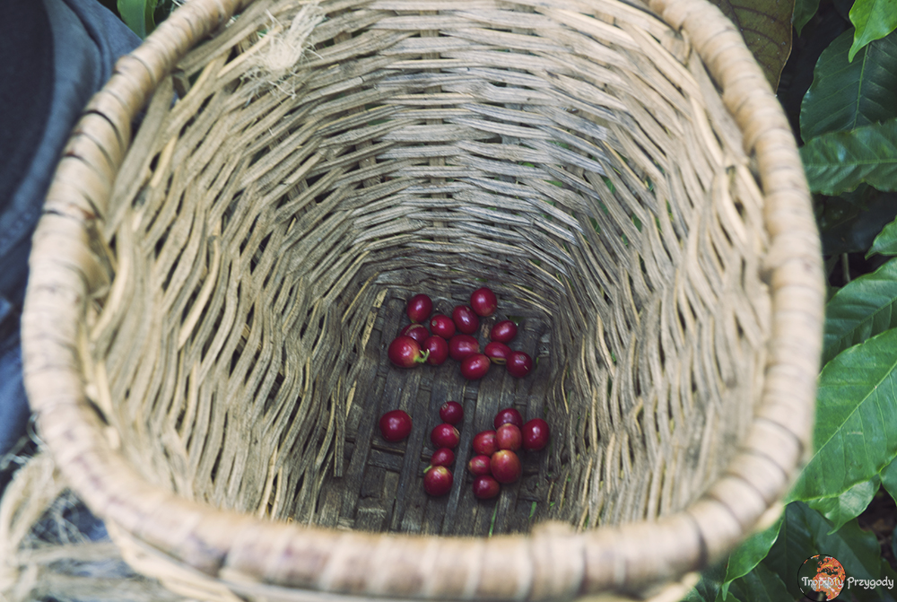 Na początku zwiedzania finki El Ocaso dostajemy plecione koszyczki, sznur konopny i instrukcję, jak mamy przewiązać go wokół pasa, aby koszyczek nie spadał. W rezultacie do końca wycieczki chodzę po farmie, asekurując jedną ręką moją plecionkę przed upadkiem. Ma nam to pomóc wczuć się w klimat, ale wyglądamy w moim odczuciu lekko niedorzecznie, trochę jak mieszkaniec Skandynawii na wywczasie w Cancún w ponczo i sombrero udający Meksykanina. Początkowy dyskomfort nadrabia nasz przewodnik, pogodny Kolumbijczyk, który raczej kiepskim angielskim recytuje suche fakty o produkcji kawy, jednak tym, co dopowiada pomiędzy wprowadza luźny i wesoły klimat. Nie mącą go nawet jego dowcipy, które psychodelą humoru nie ustępują królowi gatunku, Karolowi Strasburgerowi.