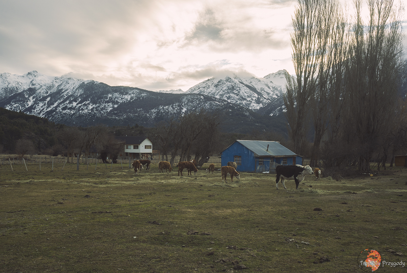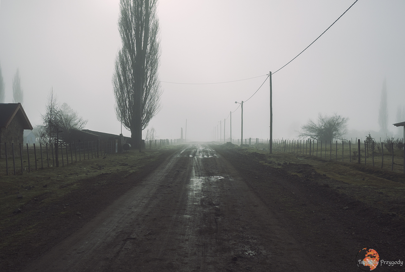 A było to tak: w Buenos Aires zostaliśmy kilka dni na Couchsurfingu u przesympatycznego Mariano. W odwiedziny wpadł do niego kumpel z południa: Augustin. Kiedy któregoś dnia weszliśmy do mieszkania, nie zdążyliśmy się nawet przedstawić nowym przybyszom, jak Augustin zaprosił nas do siebie, do Patagonii. Takich zaproszeń nie odrzucamy. Wymieniliśmy się kontaktami, godzinę później chłopaków już nie było. Kilka tygodni później wyjeżdżaliśmy z argentyńskiego krańca świata, Ushuai, na północ. Cel: lodowiec Perito Moreno, a potem Villa Lago Rivadavia. Żeby nie było tak łatwo (zimą w Patagonii nic nie jest łatwe), droga pomiędzy El Calafate (miasto przy lodowcu) a Esquel (miasto niedaleko wioski Augustina) zimą jest nieczynna. Trzeba się cofać i jechać naokoło, co pożera więcej pieniędzy i czasu. Z Esquel do Cholily autobus odjeżdża 3 razy w tygodniu, a z Cholily do Villa Lago Rivadavia też 3 razy, ale w inne dni… No jakżeby inaczej! Oczywiście, z Esquel chcemy wyjechać w dzień, w który autobus nie jedzie. Decydujemy się więc stopować. Przed nami jakieś 170 km. Ziemia zmarznięta od nocnego przymrozku, w butelce szybko ochładza się herbata, a ludzie patrzą na naszą dwójkę przy drodze jak na UFO. Po jakiejś godzinie łapiemy pierwszy stop, ale tylko do rozwidlenia dróg kilka kilometrów dalej. Ku naszemu zaskoczeniu, przy znikomym ruchu na drodze dojeżdżamy do celu w ciągu jakichś 4 godzin.