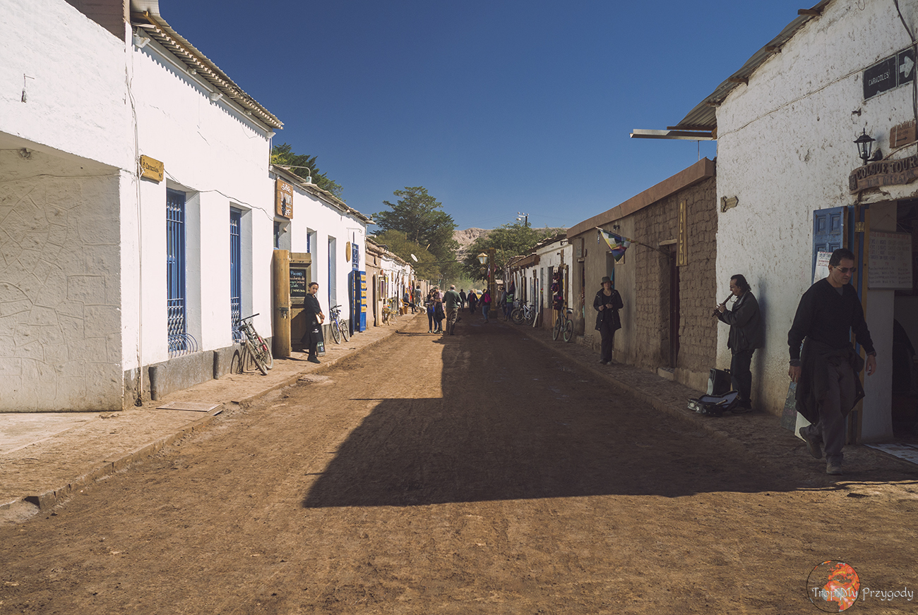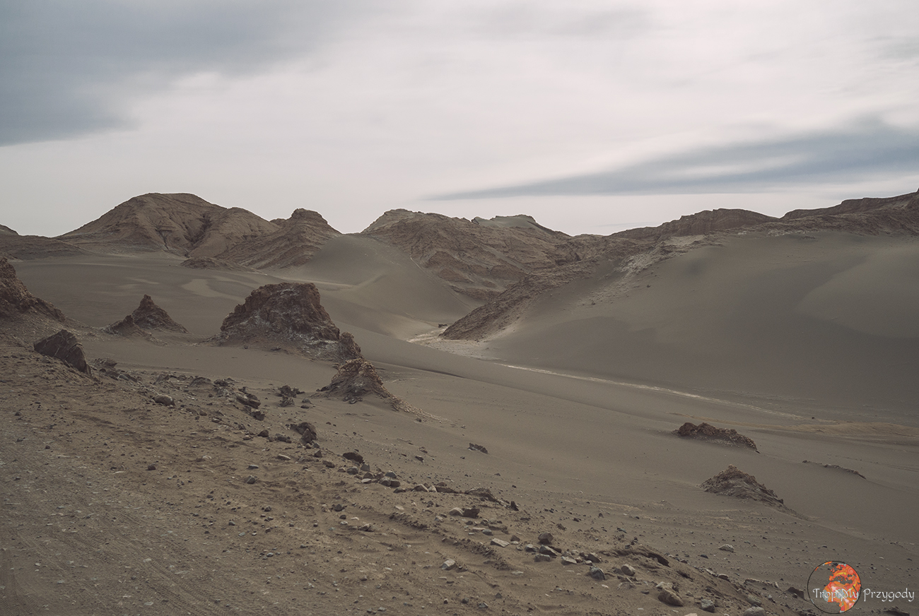 Najbardziej popularną bazą wypadową na pustynię Atacama jest urokliwe (aczkolwiek dość mocno zadeptane przez turystów) piaskowe miasteczko San Pedro de Atacama. To tutaj rozpoczynają się wszystkie wycieczki na nocne oglądanie gwiazd, laguny i solniska (ale o tych będzie w boliwijskich wpisach, bo oglądaliśmy je tuż za chilijską granicą), to tutaj można wypożyczyć rowery, to tutaj można się wybrać na sandboarding (czego my nie zrobiliśmy, bo na deskach po piasku zjeżdżaliśmy już wcześniej w Peru) czy na chilijskie solniska. Możliwości jest wiele, każdemu według potrzeb. My zdecydowaliśmy się na wypożyczenie rowerów i pojechanie na jedną z wytyczonych tras po pustyni: Valle de la Luna, czyli Księżycowa Dolina. I z pełnym przekonaniem uważamy, że rowery to najfajniejszy sposób poruszania się po Atacamie (a przynajmniej jej części), ponieważ nie są to wyczerpujące odległości, a jest zdecydowanie przyjemniej niż autobusem wycieczkowym, którym wysiada się w konkretnie wyznaczonych miejscach. Rowery dają swobodę zatrzymania się w dowolnie wybranym miejscu, robienia miliona zdjęć i przerw, kiedy tylko potrzeba. A do tego można rozruszać nogi 😉 No i najważniejsze: te niezwykłe, księżycowe krajobrazy warte są każdego wysiłku!