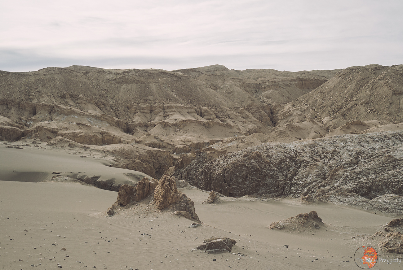 Pustynia w pierwszym odruchu kojarzy się z sypkim, pomarańczowym piaskiem po horyzont, w którym grzęzną stopy. Ale nie każda pustynia jest taka. Chilijska Atacama jest zupełnie inna: surowa, twarda, różnokolorowa. Czasem kamienista, czasem piaszczysta, a czasem solna. Zawsze jednak sucha. Podobno są na pustyni pojedyncze miejsca, w których ani jedna kropla deszczu nie spadła przez 400 lat! Czasem jednak, kiedy z nieba spada niezwykle rzadki deszcz, pustynia pokrywa się kolorowymi kwiatami. Niestety, ostatni raz kwitła w październiku 2015 roku, a więc trochę ponad pół roku przed naszym przyjazdem. Cóż zrobić, nie było nam dane zobaczyć tego niezwykle rzadkiego widoku. Za to zobaczyliśmy ją w swojej suchej odsłonie i zrobiła na nas spore wrażenie.