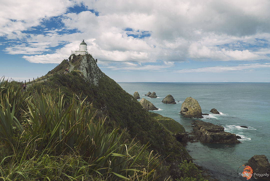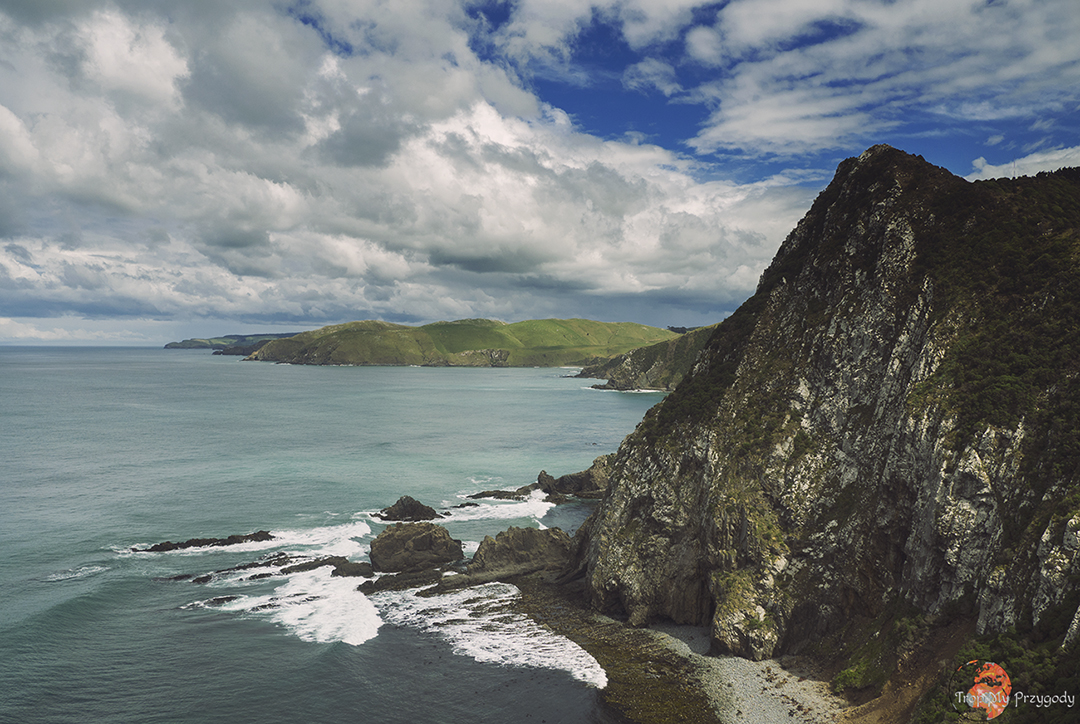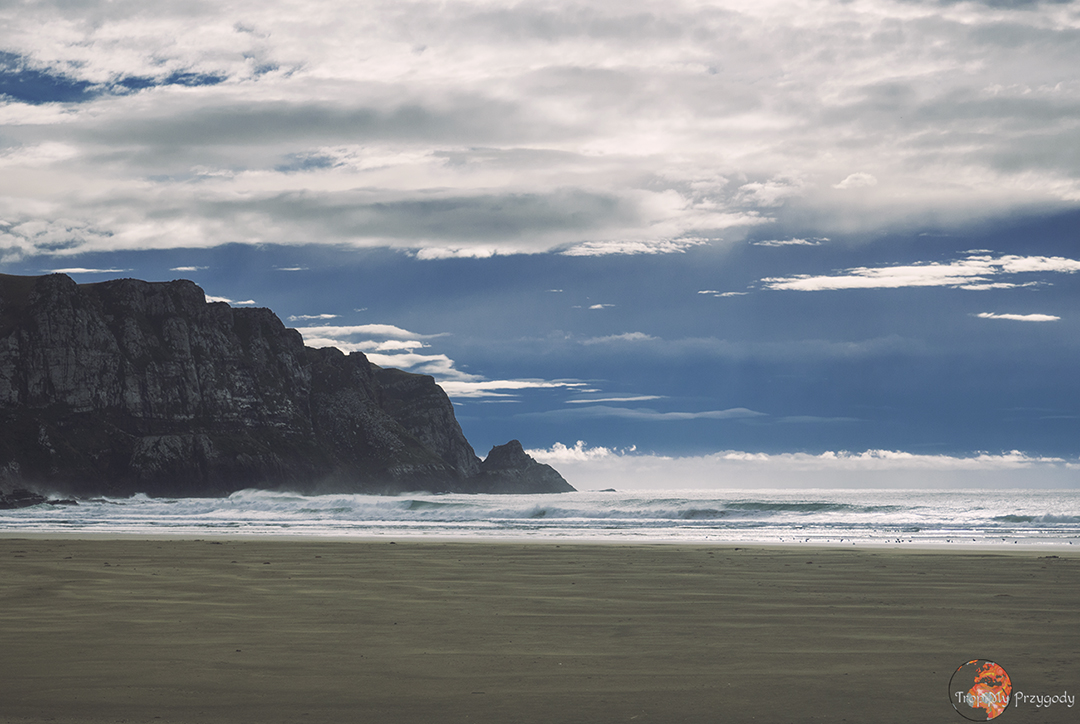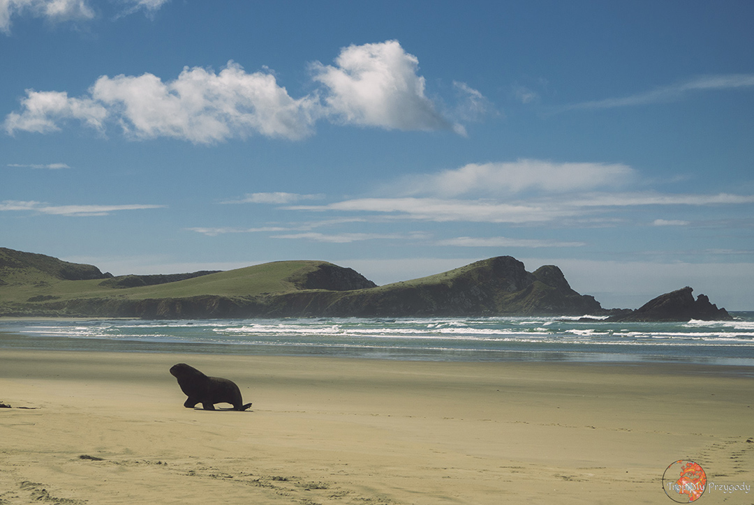 Co warto zobaczyć/zrobić: dzień siódmy naszego road tripu zaczynamy od spaceru po plaży. Zatrzymujemy się przy Surat Bay i idziemy plażą do Cannibal Bay – plaży kanibali 😉 Spacer powinien zająć nam jakąś godzinę w obie strony, bo plaże są naprawdę malownicze, a po drodze spotkać można lwy morskie (dla własnego bezpieczeństwa i nie psucia dnia lwom morskim nie podchodźmy do nich bliżej niż 15-20 metrów). Przy niskim poziomie wody z plaży Surat ponoć widać wrak statku Surat, od którego wzięła nazwę. Ponoć, bo my nie widzieliśmy, ale tego dnia fale sprawy nie ułatwiały. Kolejnym punktem, jednym z bardziej malowniczych i najbardziej obleganych na całej trasie, jest latarnia morska na Nugget Point. Na naszą super fotę białej, malowniczej latarni będziemy musieli trochę poczekać, gdyż przed obiektywem przelewają się tłumy turystów.