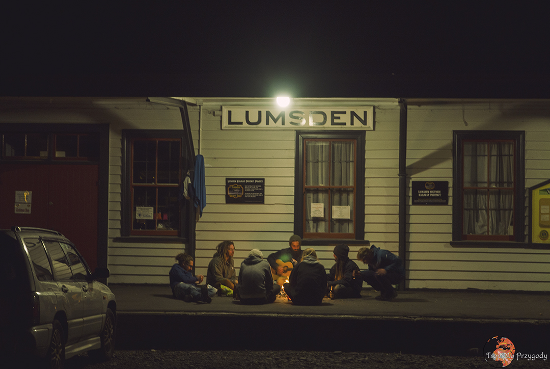 Nocleg: darmowy camping w Lumsden. Super miejscówka w środku miasteczka, przerobiona z dawnej stacji kolejowej. Sporo miejsca na przygotowanie kolacji pod zadaszeniem peronu, dostępna jest też woda pitna. Jest również darmowy internet z biblioteki naprzeciwko, a jak potrzebujemy to jest i kawiarnia w stylu amerykańskim obok biblioteki z dobrym netem i kawą. Naprzeciwko jest również market. Camping utrzymywany jest przez lokalną wspólnotę, więc uszanujmy! Dobre miejsce na odpoczynek zwłaszcza, jeśli jedziemy w drugą stronę i jesteśmy po aktywnym czasie w regionie Milford Sound.