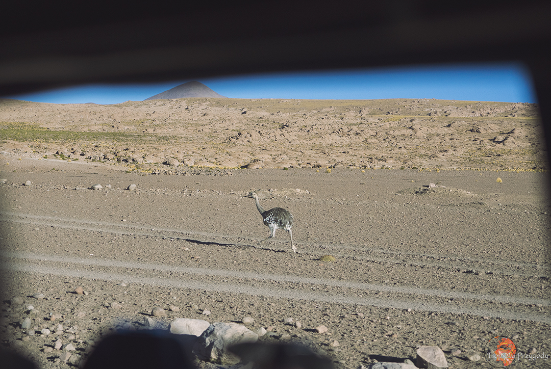 Następnego dnia ruszamy wcześnie, bo przed nami sporo jazdy i atrakcji. Dziś mamy dzień lagun. Kierujemy się na Park Narowody Eduardo Avaroa (Reserva de Fauna Andina Eduardo Avaroa). Dojeżdżamy prawie pod granicę z Chile, do pięknej laguny i wulkanów. Po drodze mijamy wikunie, lamy, viscacha (szynszylowate, trochę podobne do królika) i… strusie nandu! To pierwszy raz w naszym życiu, kiedy widzimy strusia na wolności! Mamy też nadzieję na flamingi, ponieważ w planach jest Laguna Colorada, będąca domem dla tysięcy flamingów. Okazuje się jednak, że zimą uciekają w cieplejsze rejony, na inne zatoki. Wszyscy są zawiedzeni, bo nikt nam nie powiedział, że flamingów tym razem nie zobaczymy. Na koniec jeszcze dwie mega atrakcje – gejzery (nieźle dawało siarą) oraz… gorące źródła! Nie łatwo jest się zdecydować na zrzucenie ciuchów przy niskiej temperaturze i mroźnym wietrze, ale gorąca woda i widoki rekompensują wszystko!