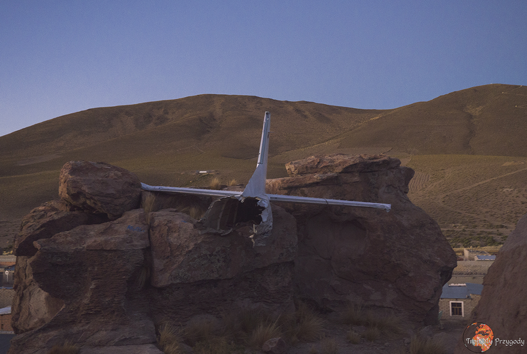 Dojeżdżamy do miejsca naszego noclegu i okazuje się, że tam, gdzie mieliśmy spać wszystko jest już zajęte (rezerwacje z bookingu tu chyba nie działają ;)). Jedziemy więc do innego miejsca w miasteczku, dość obskurnego, gdzie nawet nie mamy klucza do pokoju i jest jeszcze zimniej niż podczas pierwszej nocy. Idziemy na skałki, które okalają miasteczko, a tam czeka nas przywiązany do skały… ogon małego samolotu. Po kolacji siadamy przy rumie i zapraszamy Miguela i Porfidię (kucharkę i przy okazji złotą kobietę), żeby do nas dołączyli. Porfidia opowiada nam, co to za kawałek samolotu. Okazuje się, że na wzgórzu po drugiej stronie miasteczka (Villa Mar) leży kawałek skrzydła. Jakieś 8 lat wcześniej, mały wojskowy samolot z trzema osobami na pokładzie przelatywał nad Villa Mar. Wiał bardzo mocny wiatr, samolot ściągnęło i się rozbił. Jeden z pasażerów zginął, dwóch przeżyło. I tak na pamiątkę tego wydarzenia zostały dwa kawałki samolotu. W nocy budzi nas ktoś, próbując wejść z impetem do pokoju (zastawiliśmy drzwi plecakami), krzycząc jakieś imiona. Okazało się, że jakiś pijany facet szukał swoich znajomych. A prosiliśmy przecież o klucz…