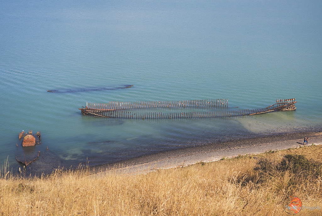 Po kolejnych paruset metrach dojdziemy do największej atrakcji wyspy, której od samego początku spaceru nie mogliśmy się doczekać. Schodząc do kamienistej plaży naszym oczom ukazało się tzw. cmentarzysko statków. Przy samym brzegu znajdziemy osiem wraków statków z połowy XIX wieku, w tym jednego z kotłem parowym. Jest to idealne miejsce do robienia zdjęć oraz pikniku na trawie. Wracając na szlak widzimy z góry plażę Walkers Beach i idziemy dalej: do miejsca, z którym wiąże się kolejna smutna historia wyspy Quail Island. Na początku XX wieku z Samoa przybyło do Nowej Zelandii dwóch braci, którzy zapragnęli odwiedzić swoich bliskich. Po przybyciu w te okolice stwierdzono u nich objawy trądu. Trafili na Quail Island, gdzie działała w tym czasie kwarantanna dla ludzi zarażonych tą chorobą. Jeden z braci szybko został z niej zwolniony, jako że nie był chory. Drugi niestety zmarł na wyspie, mając zaledwie 25 lat. Był to jedyny udokumentowany zgon w koloni chorych na trąd, do której dochodzimy po chwili, mijając grób młodego Samoańczyka.