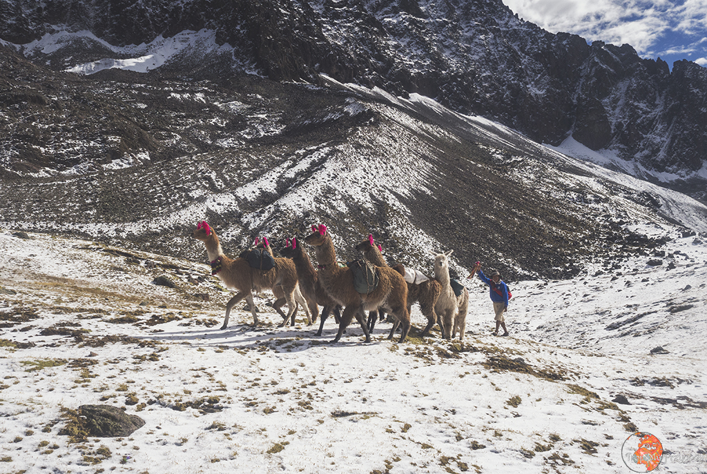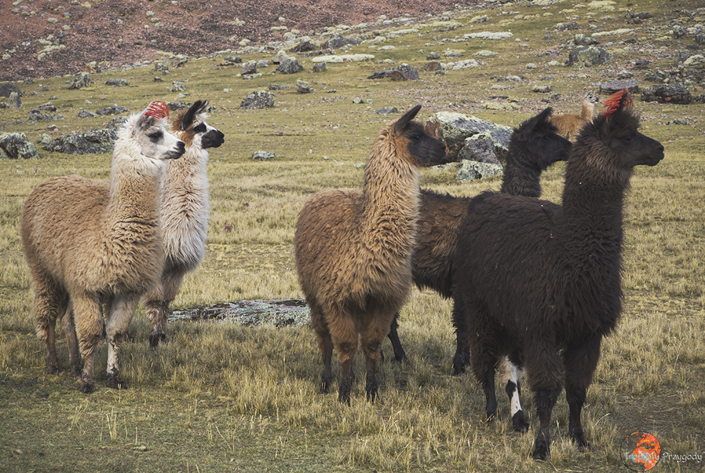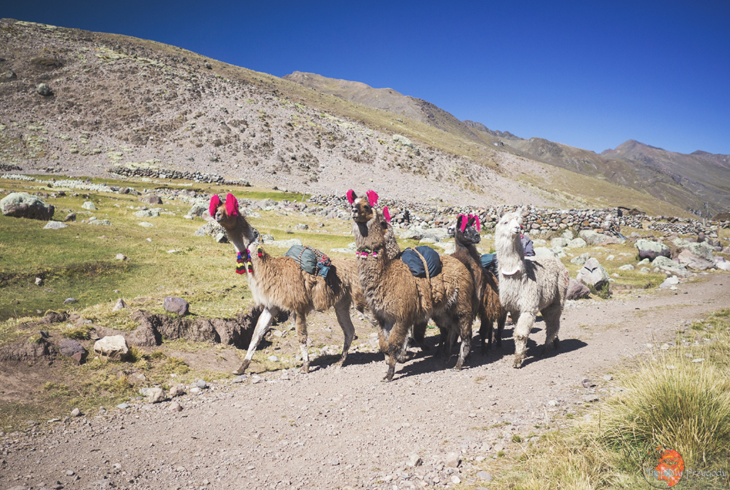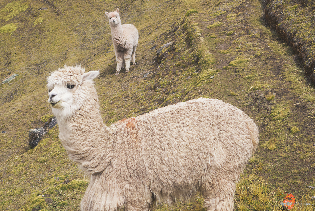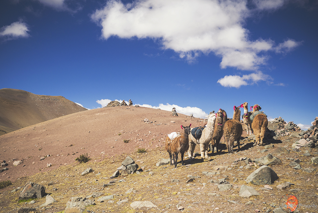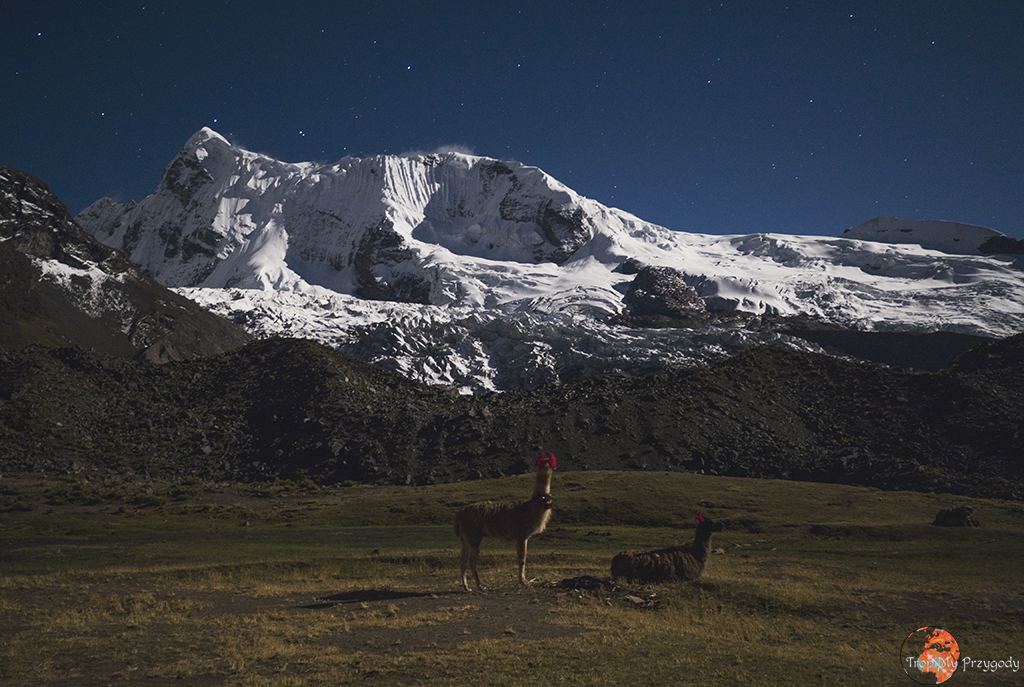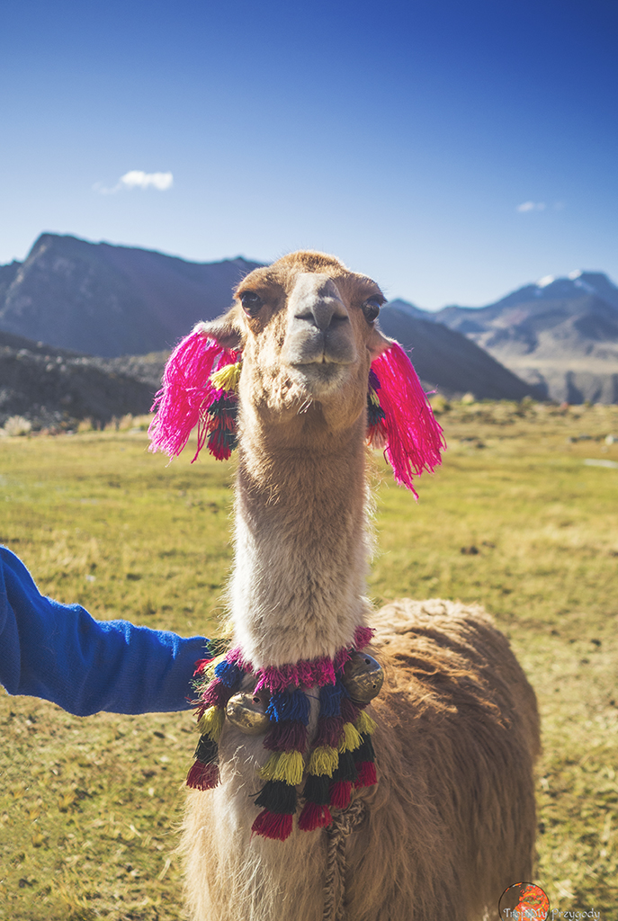 **Żadna lama nie ucierpiała przy robieniu zdjęć. Co więcej, wszystkie lamy zostały sfotografowane w środowisku naturalnym i bez nadmiernej ingerencji w ich egzystencję (lama, którą głaskałam to jedna z naszych tragarzy podczas trekkingu). Piszę o tym, bo lamy można też spotkać w miastach, gdzie kolorowo, tradycyjnie ubrane Panie ciągają te biedne lamy na sznurkach, często do tego ubrane w jakieś dziwne stroje i stają z nimi przy ruchliwych ulicach, żeby turyści mogli sobie z nimi robić zdjęcia za kilka soli. Rozumiem biedę i chęć zarobku, ale lama jest stworzona do plucia na trawę, a nie na chodniki. Zresztą, więcej o zwierzakach wykorzystywanych w turystyce przeczytacie u Przedeptanych. Jeśli będziecie w Peru czy Boliwii i chcecie zdjęcie lamy, to zamiast dać się skusić na zdjęcie z lamą w mieście – idźcie po prostu w góry.