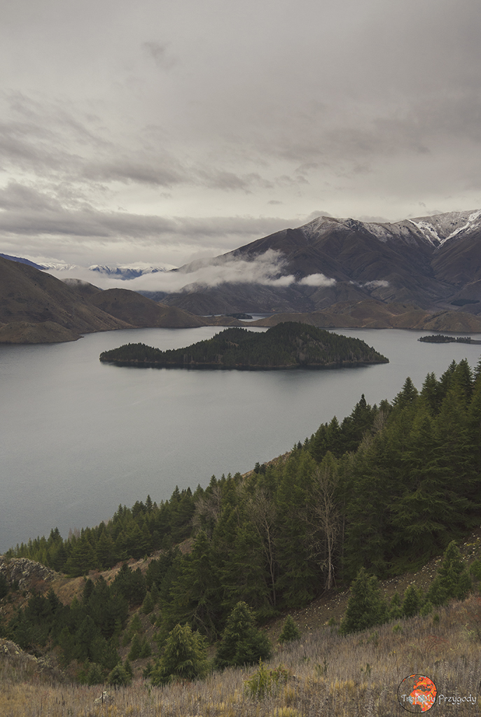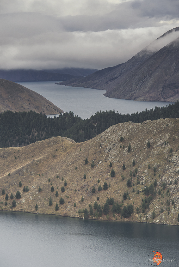 Po śniadaniu jedziemy do Otematata, gdzie skręcamy w lewo na „Lake Benmore”. Po drodze mijamy tamę, którą przekraczać będziemy w drodze powrotnej. Póki co, kontynuujemy jazdę pod górkę, docierając do końca drogi, gdzie znajdziemy parking i początek półtoragodzinnej trasy. Trasa jest pętlą, idąc w prawo wybieramy jej łagodniejszą wersją, jej lewa odnoga będzie bardziej „pod górkę”, za to szybciej dotrzemy do punktu widokowego. My, nie wiedząc o tym, zdecydowaliśmy: „ok to może być w prawo”. Trekking był mało wymagający (jedynie parę krótkich, stromych podejść), za to widok zapiera dech w piersiach. Przy ok. połowie trasy otworzy się przed wami widok na większość jeziora Benmore. Super miejsce do zdjęć, odpoczynku, medytacji, podziwiania natury itd. Idąc dalej lekko pod górkę dotrzecie do punktu widokowego (ok. 2/3 trasy) i fotogenicznie umiejscowionej na szczycie ławeczki. Ostatni etap to dosyć strome zejście do parkingu.