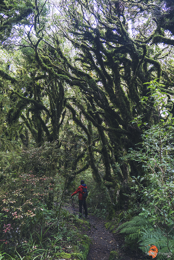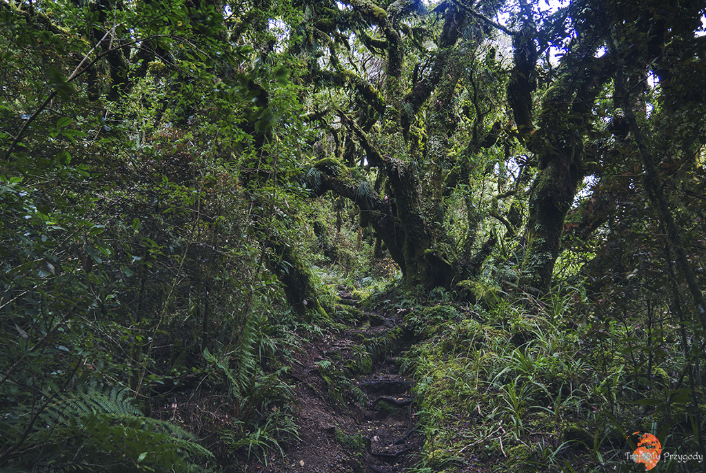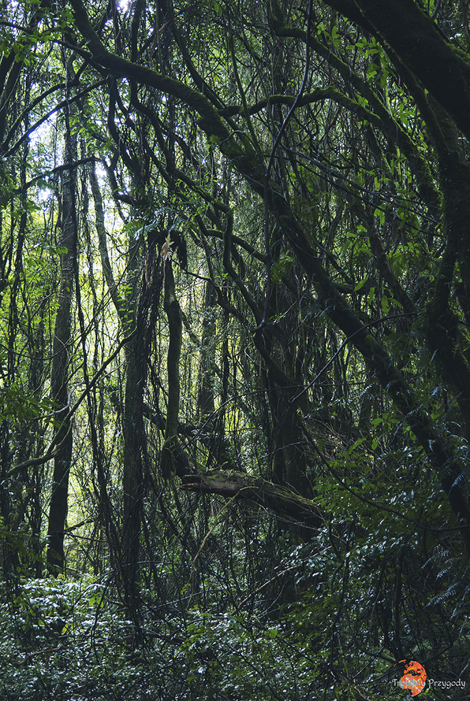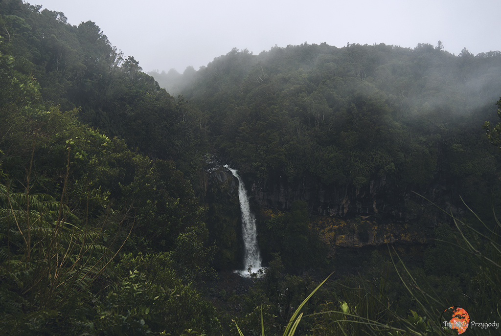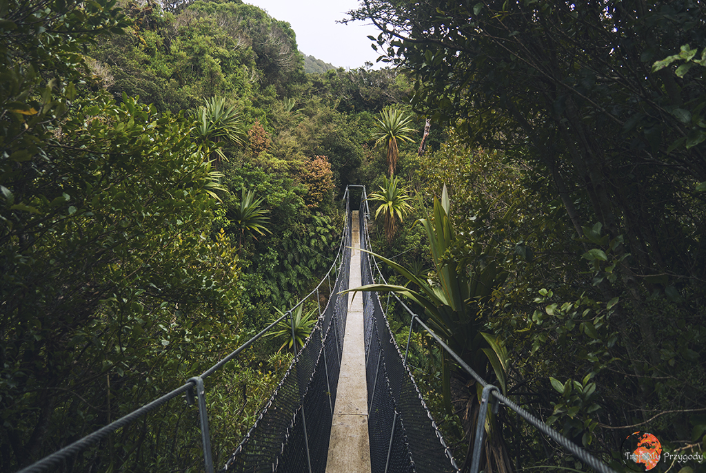 Dzień zaczynamy wcześnie rano od przyjazdu do Dawson Falls Visitor Centre, sam wodospad zostawiacie jednak na koniec. Zaczynamy szlakiem na Wilkies Pools, ale ponieważ ma on tylko 2 kilometry (i to łącznie z powrotem), to trochę go rozszerzymy. Idziecie więc lewą odnogą szlaku, która jest super łatwa i ma wbitą w ziemię plastikową siatkę, aby przy ulewnych deszczach (jak nam się trafiło) łatwiej się szło. Idąc przez las dochodzimy do źródeł (Wilkies Pools) i wodospadu Twin Falls. Nie zawracamy tu jednak w kierunku centrum informacji turystycznej. Zrobimy dużo większą pętlę. Idziemy trasą Enchanted Walk w kierunku malowniczego mostu linowego. Z Enchanted Walks skręcać będziemy w prawo na trasę Waingongoro Track, która zaprowadzi nas do super chatki Waingongoro Hut, gdzie jedmy lunch/obiad. Pamiętajcie, aby zostawić chatkę w takim stanie, w jakim ją zastaliście! Po posiłku idziemy dalej Waingongoro Track i skręcamy w lewo w Ridge Track, którym dochodzimy w okolice centrum informacyjnego. Nie kończymy tu swojej trasy, tylko robimy jeszcze jedną, kolejną pętlę, tzw. Kapuni Loop Track, co pozwoli nam zobaczyć słynny wodospad Dawson Falls, stację energetyczną przy wodospadzie oraz wspiąć się na punkt widokowy. Całość trasy zajmie nam od 6 do 9 godzin w zależności od kondycji fizycznej, pogody oraz długości przerwy lunchowej w chatce.