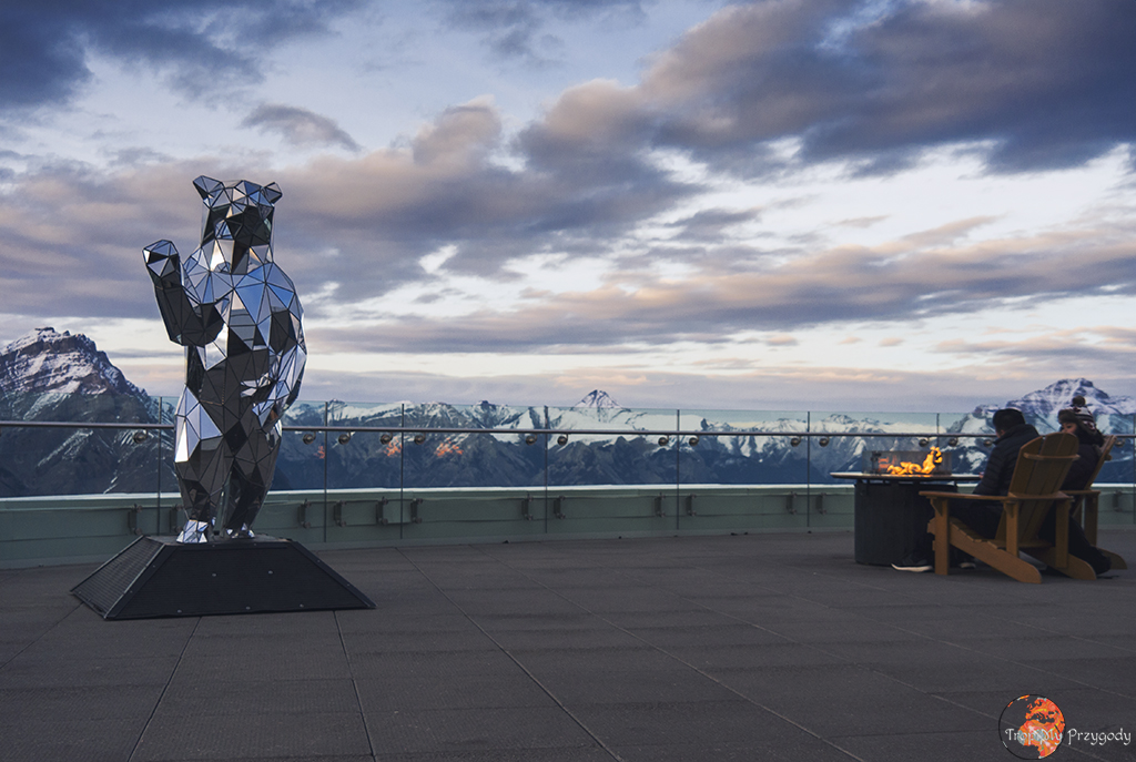 Banff Gondola – jest znacznie fajniejsza niż się spodziewaliśmy. Uważamy, że warto tam wjechać pomimo wysokiej ceny (58$ jeśli zarezerwujecie przez internet, ale można też taniej: wjeżdżając po 17 zapłacicie 49$, co jest super, jeśli i tak planowaliście wjechać tam, tak jak my, na zachód słońca). W cenie biletu dostajemy nie tylko widok w trakcie jazdy oraz z tarasu widokowego. Na górze mieści się całe centrum poznawcze, które w fajny i interaktywny sposób opowiada o spędzaniu czasu w górach, dorzuca trochę historii miejsca oraz dostarcza sporo zabawy – można się sprawdzić m.in. w robieniu węzłów czy przetestować na własnej skórze różnicę w podnoszeniu plecaków z nowoczesnym sprzętem dzisiejszych czasów oraz z tym z czasów pierwszych traperów. Na tarasie poustawiano podgrzewacze, aby robiąc zdjęcia zachodu słońca nie zmarznąć za bardzo. Do tego mamy jeszcze krótką trasę na okoliczny szczyt z panoramicznym punktem widokowym na całą okolicę. Z pewnością Gondola w Banff kopie tyłek tej w Jasper 😉 Oczywiście, na górę prowadzi nie tylko gondola, ale i szlak, także kto chce się rozruszać, może wejść. Kto leniwy (tudzież poprostu nie może wejść), niechaj wjeżdża 😉