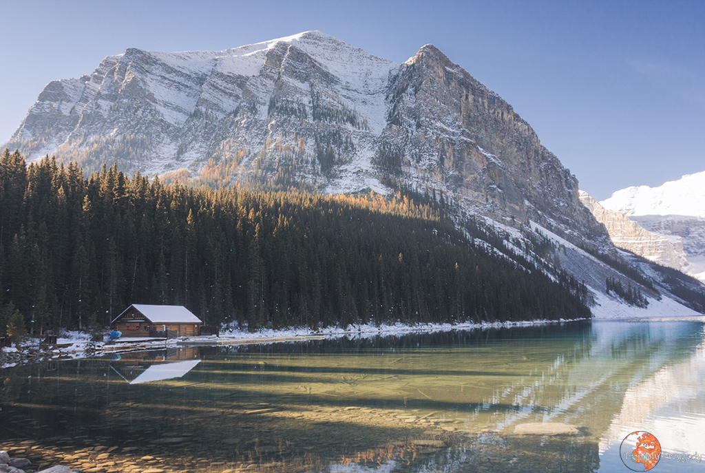 Lake Louise + Lake Agnes + Tea House – Lake Louise, od którego nazwę wzięła miejscowość, jest naprawdę niesamowite! Otoczone pięknie przez góry, z widokiem na lodowiec. Trasa trekkingowa zabierze was do Lake Agnes oraz jednego z paru tzw. tea house położonych w dolinie kawałek od Lake Lousie. Niestety, domki zmknięte są poza sezonem letnim, a nad samym Lake Louise trudno przebić się z aparatem nad wodę – nawet jesienią.