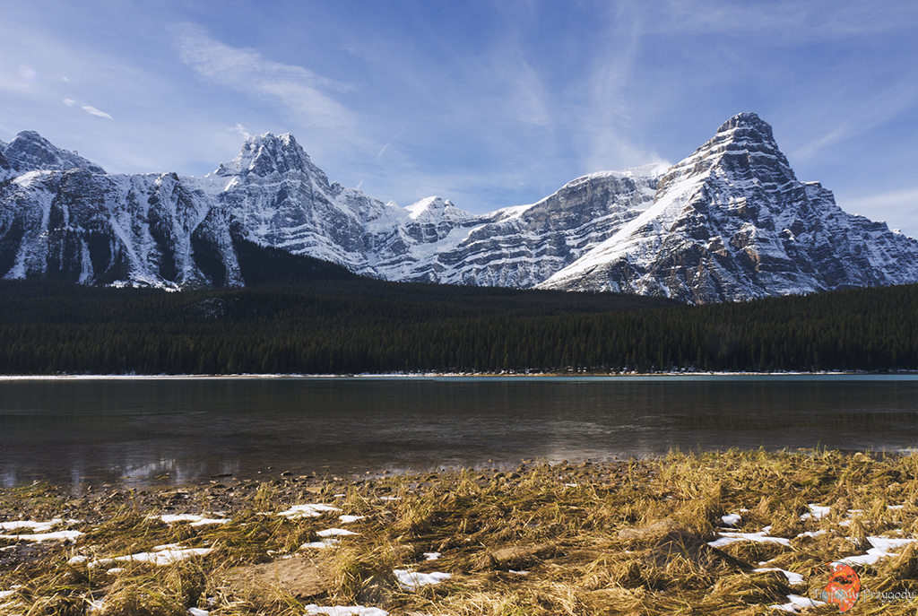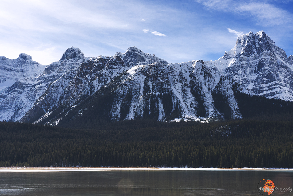 Waterfowl Lakes – miejsce, które było nam pisane od początku wyjazdu, choć trochę, że tak powiem, „od tyłka strony”. Dlaczego? Zdjęcie tego jeziora naklejone było na tył naszego kampera (każdy kamper od Cruise Canada obklejony był innym miejscem). Jeśli wasz pojazd takiego zdjęcia mieć nie będzie, to tak czy siak polecamy się tu zatrzymać lub/i takie zdjęcie własnoręcznie sobie wykonać i dokleić (za ewentualne spory z firmą, od której wypożyczycie samochód nie odpowiadamy :P).